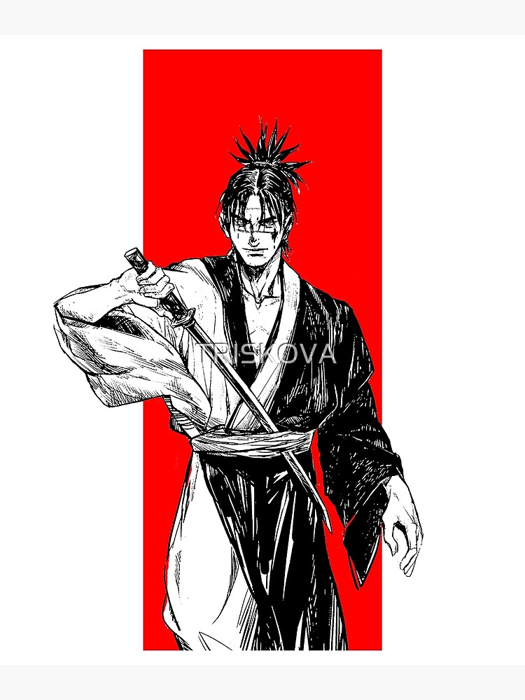 The protagonist Manji, the author was drawn a totally straight, unvarnished version of his Samura's ideal hero: "a person who never reveals his or her own weaknesses to others, but who at the same time is not as unassailable powerful as he or she may seem". The character's immortality curse is meant to give a contrast to escapist heroes. This was influenced by 1960s's manga protagonists "possessing supernatural power as well as and "the loss and sorrow of having to live with that power" as an element of two sides of the same coin. As a result, Samura conceived the idea an immortal protagonist whom the readers would not like to become.
